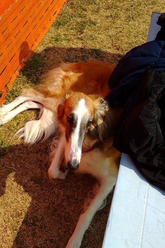 ラン内に先客ボルゾイ1頭、ゼフィーです