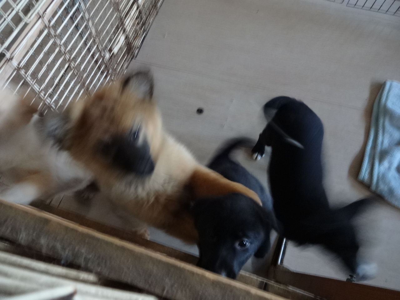 2階に上がると、あの、子犬たちが、1か所に集められて、