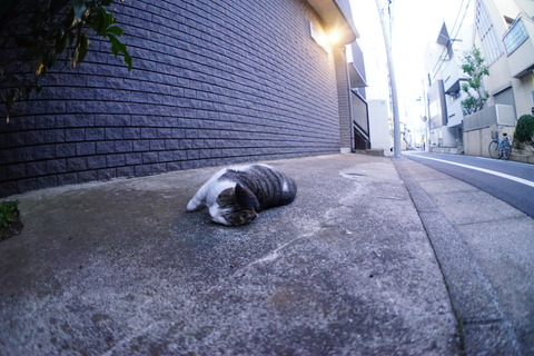 朝の通り道は白サバ姉さんのねぐらがある。