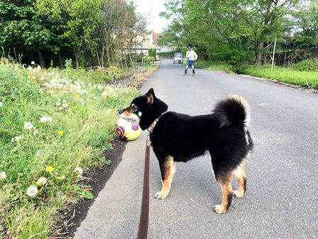 **************************************************************** 散歩中、たま弟にたんぽぽの綿毛の遊び方を教えた たまきに付けないで~というと 逃げ出して