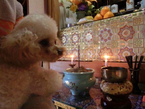 今朝は、孫たちが居ないんで、ライト君とゆったりお参りした後、清め塩をふりました。