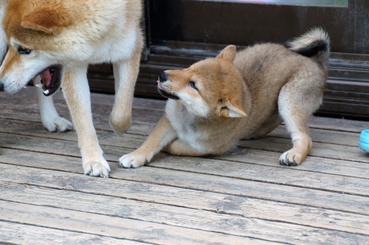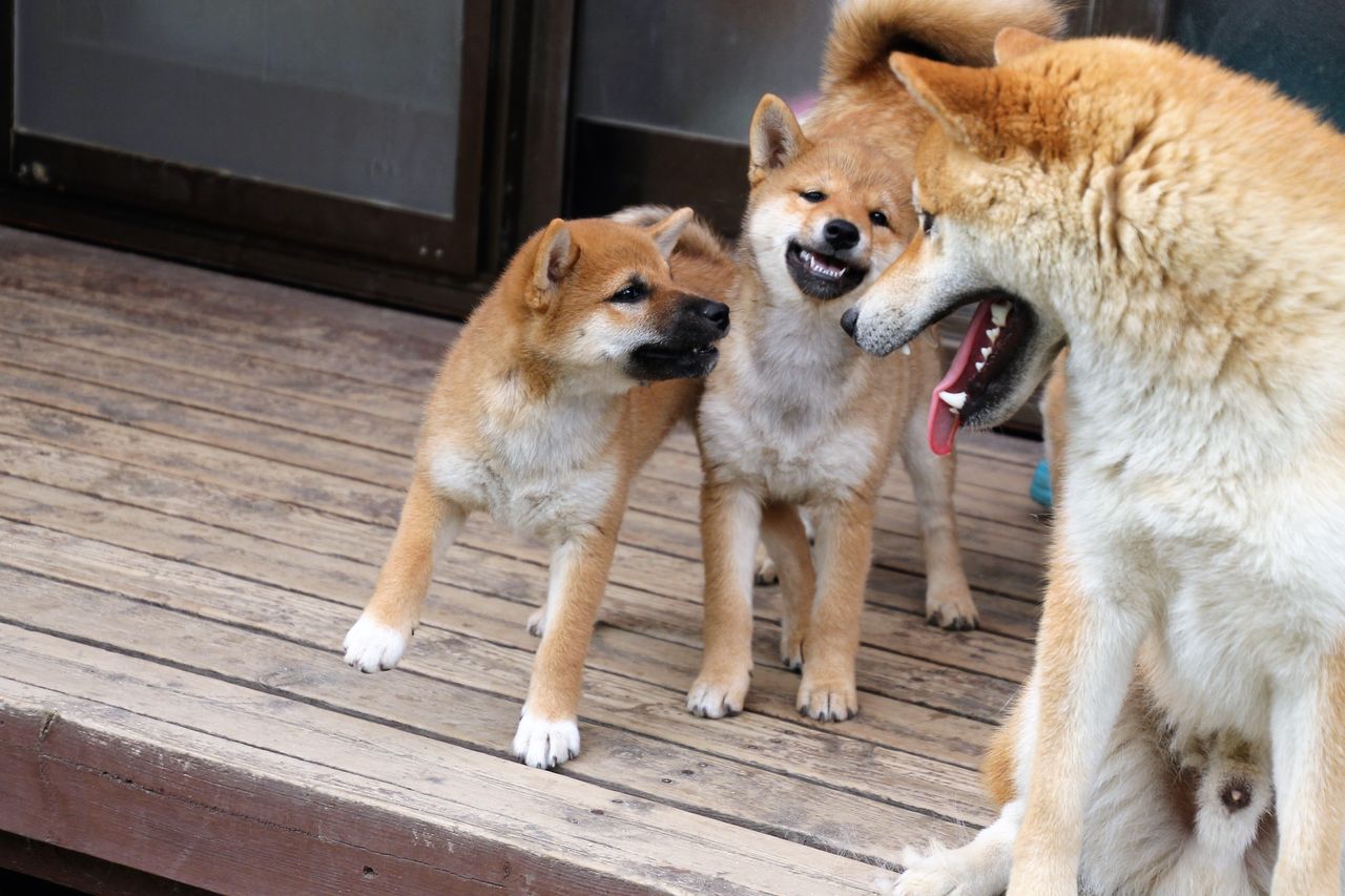 雨降りはデッキに集う皆柴