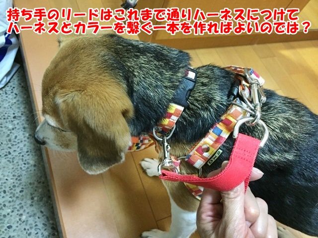 よし!マリンママさんに提案しよ~っとパソコンを開いたらマリンママさんからメールが来てて「2手に分かれるものではなく一本で済むカラーとハーネスを繋ぐリードを作ることにしました」