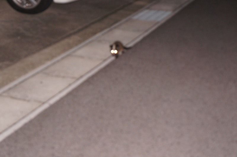 道路の向こうから例のハクビシンがキジのような鳴き声をあげながら陸ぼんに向かってくる