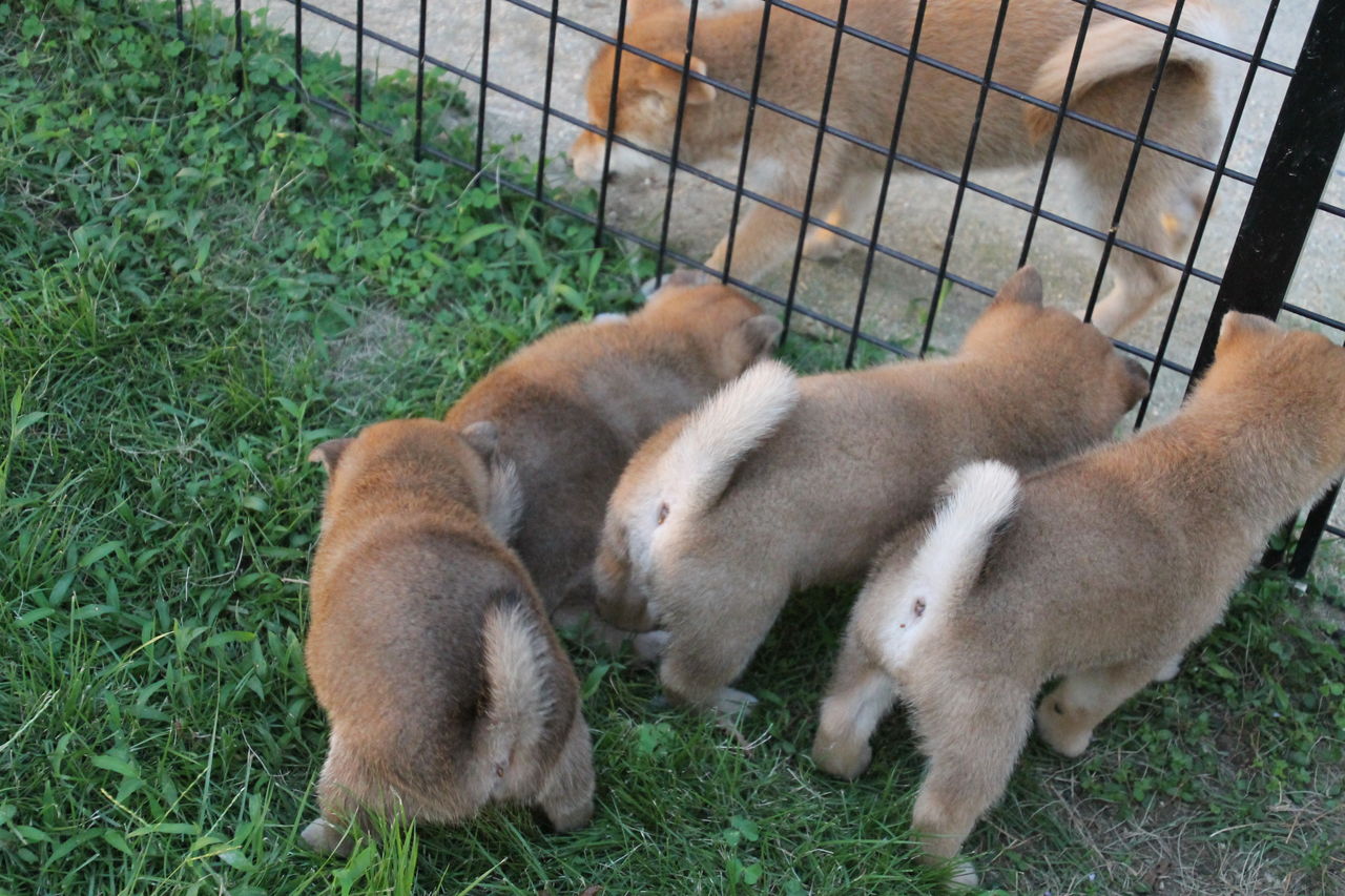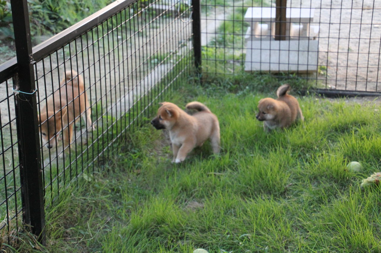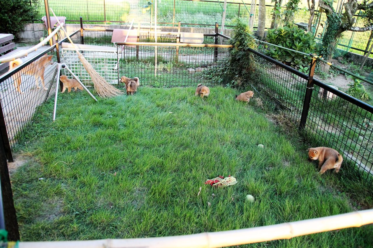 仔犬の遊び場に放牧すると