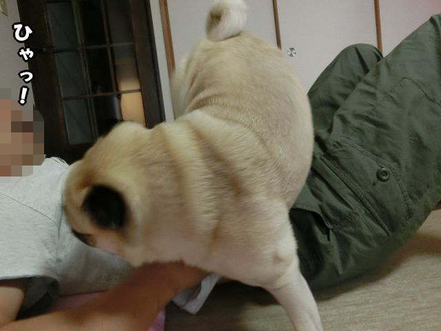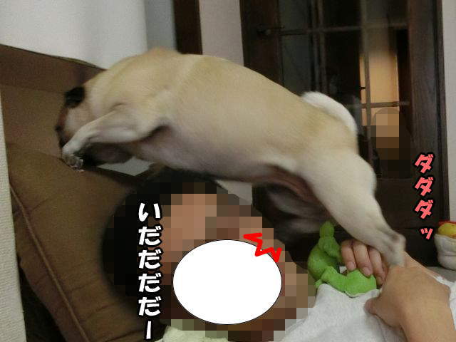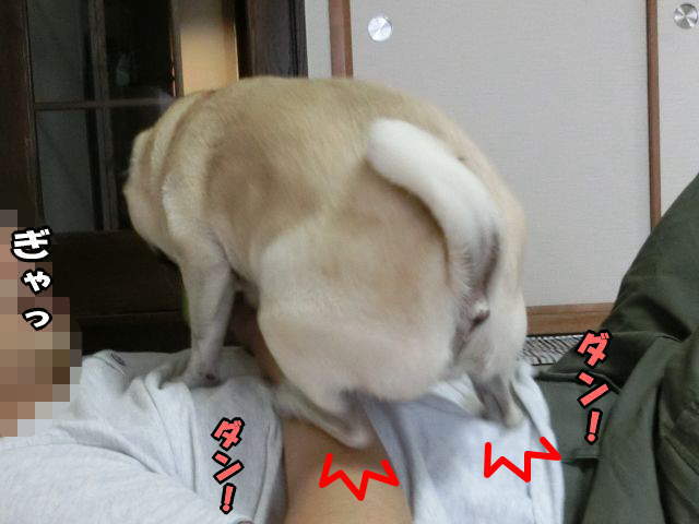 旦那と遊んでいる時によく旦那をまたぐはなちゃんですが