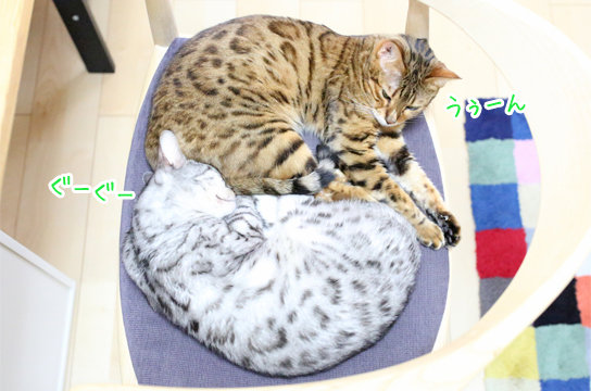 イスの上で仲良くお昼寝中のモナーとギコです ( ´∀`)つ
