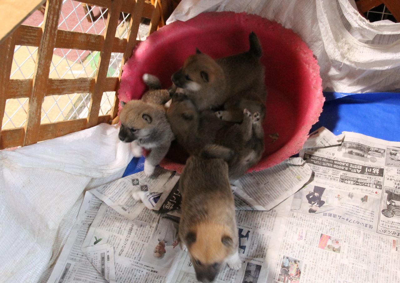 犬は早じまい、仔犬をはべらして遊びましょうっと。