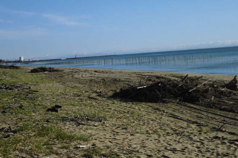 海岸にあったたくさんの流木ゴミが片付けてありました