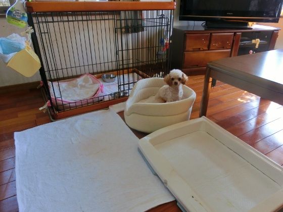 チビちゃんたち皆を、リビングへ連れてきて遊んでいると、やっぱりお漏らししてしまいました。