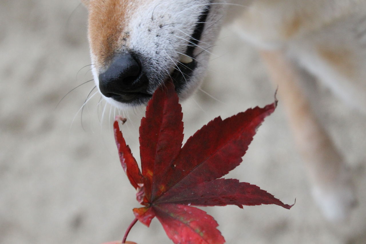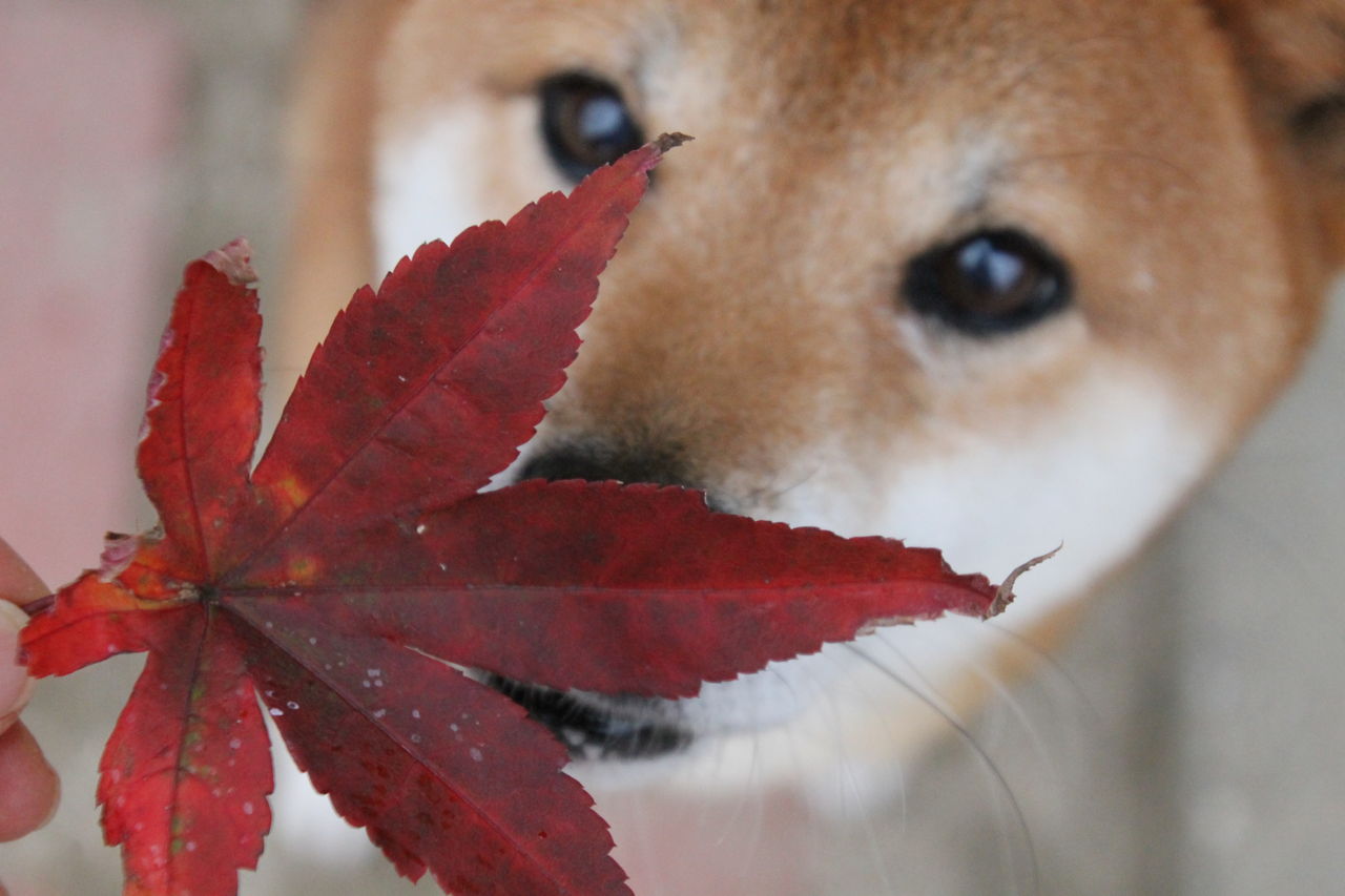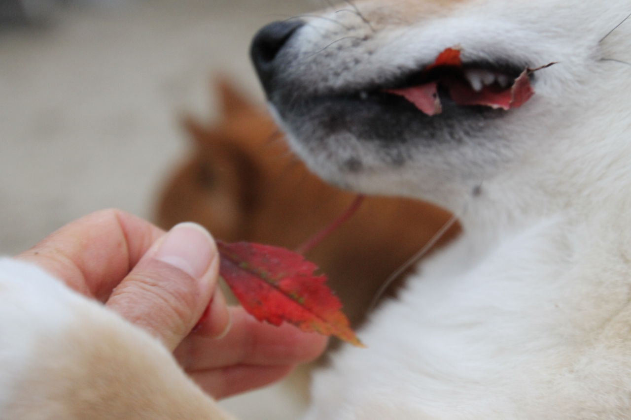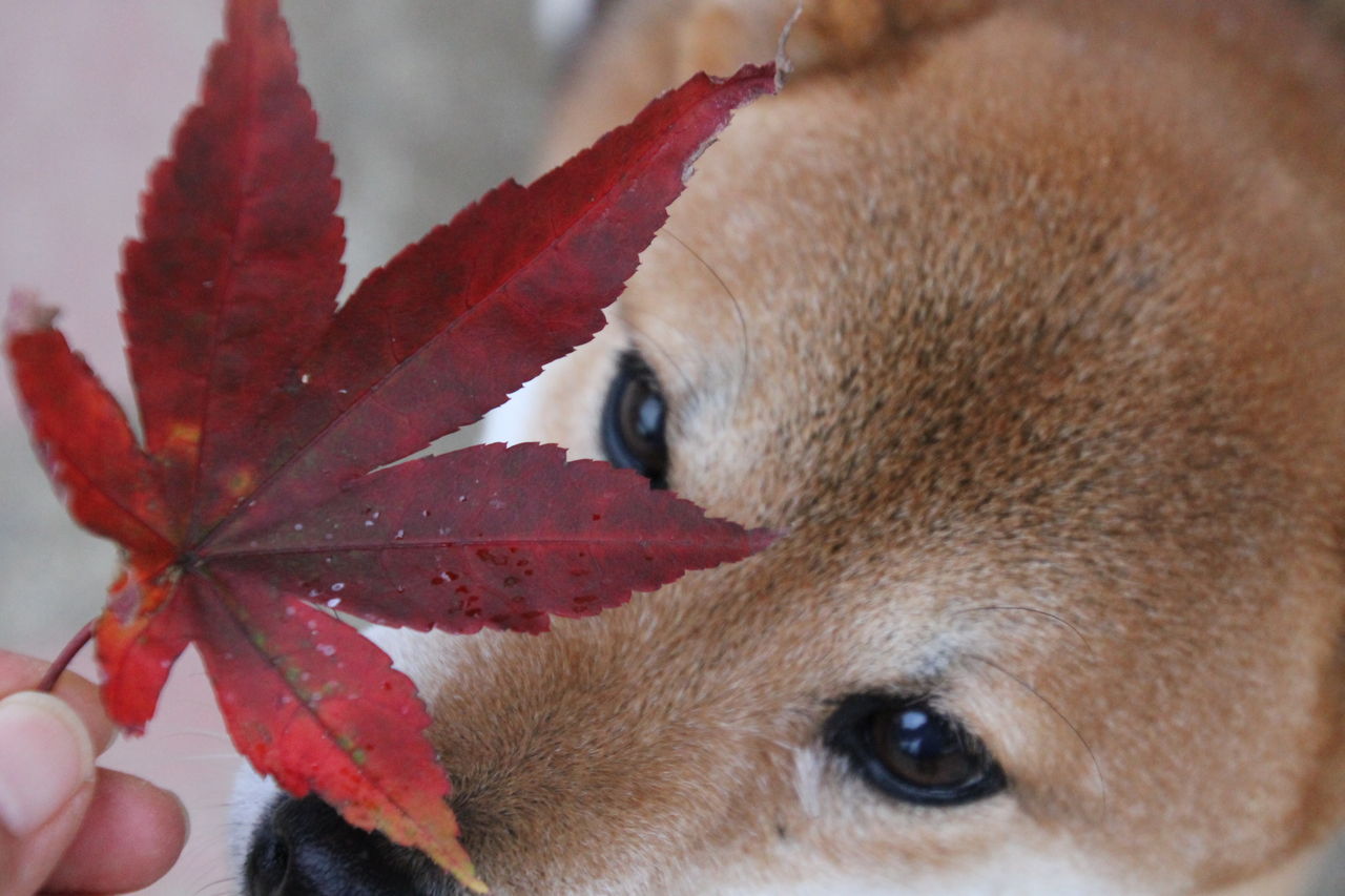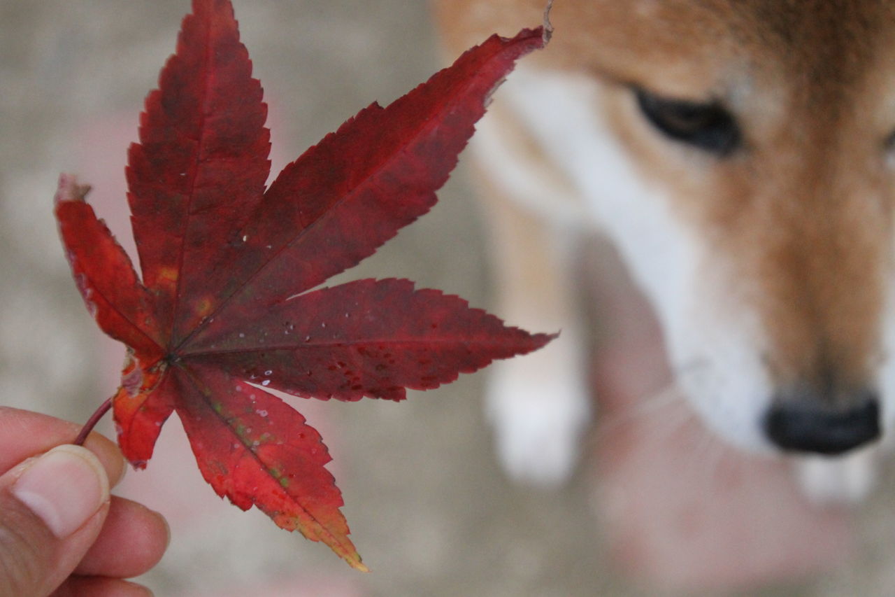一人、紅葉のきれっぱしで遊ぶ伊予