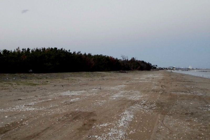 まとめてあった流木ゴミがきれいに回収され広々とした海岸になった