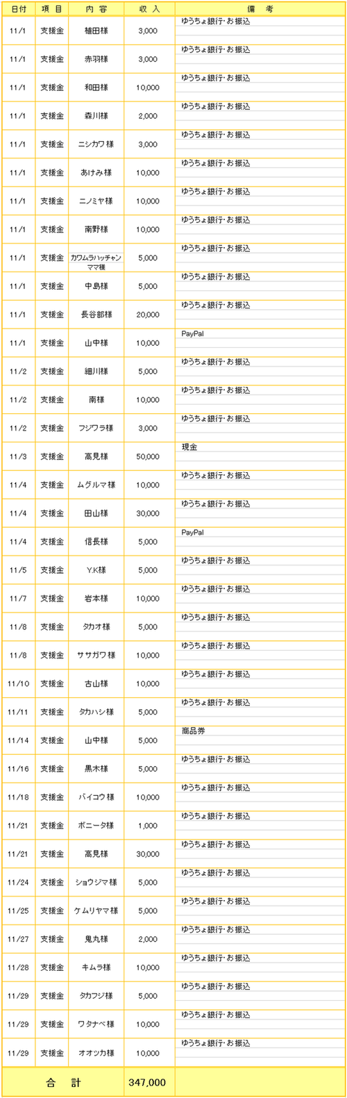 記入ミス等を防ぐ為に、支援金のお名前は振込人のお名前で掲載させて頂きます。