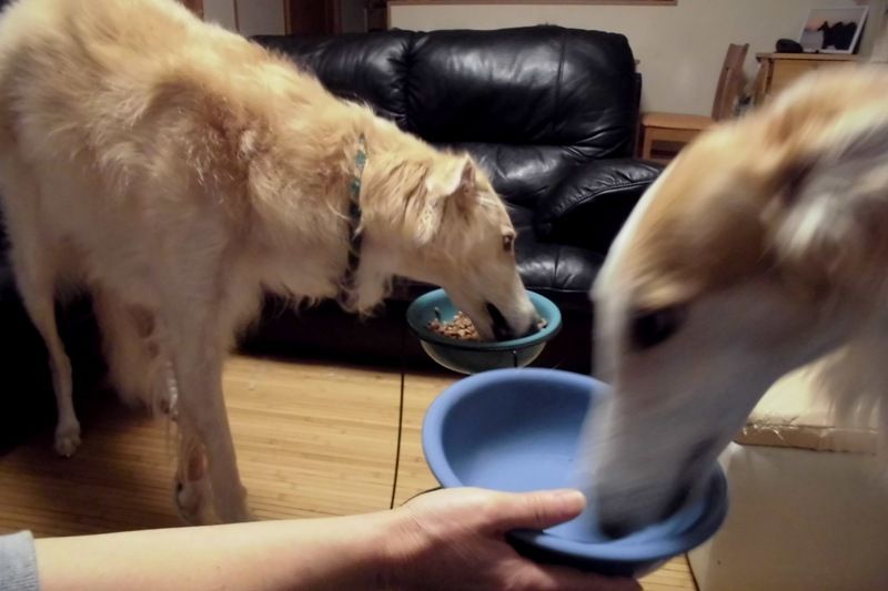 陸ぼんの食器から床にこぼれ落ちたフードを拾うユリさん