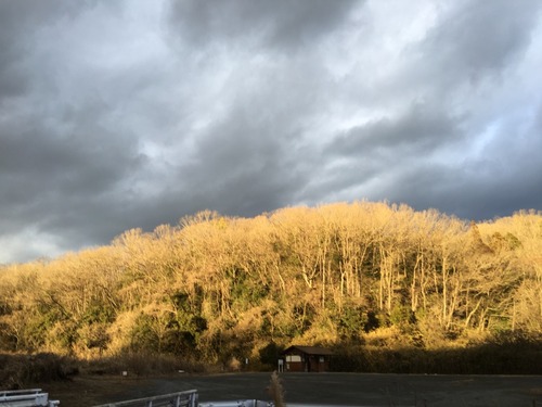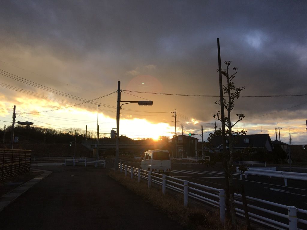 夕日が曇り雲を押し出して幻想的な空になりました。