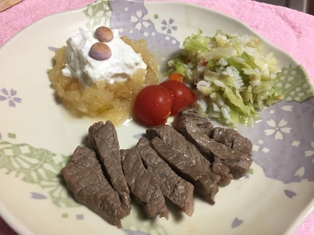 今宵はステーキをどーんと食わせてやろうと肉だけは買ってきてたのですがあとは思い付きです。