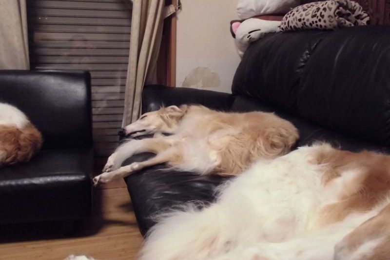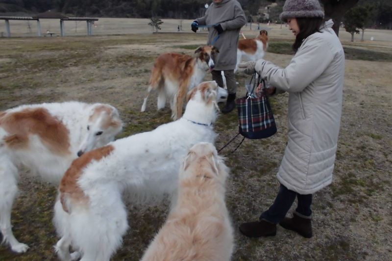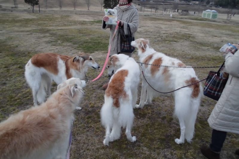 今週も公園散歩を楽しんだボルゾイ5頭である