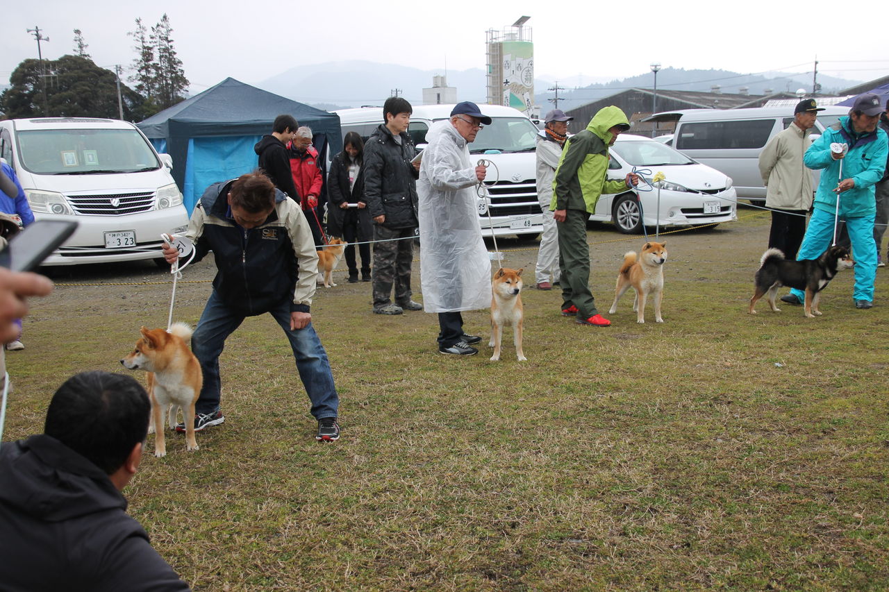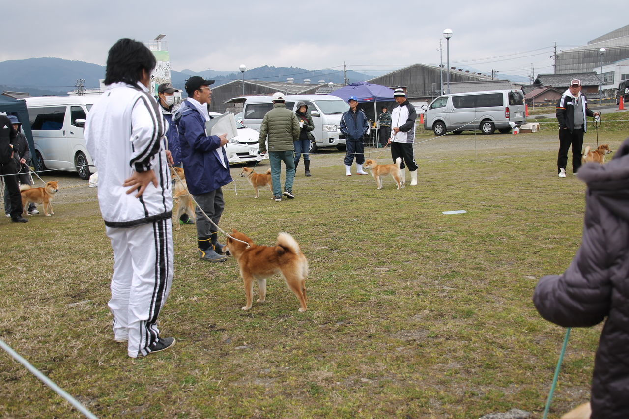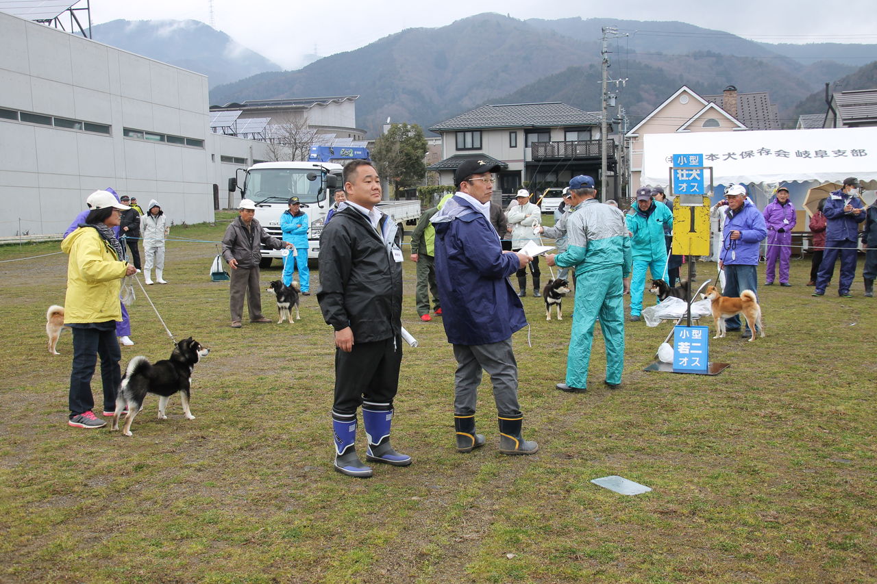 審査の様子、皆さん寒そうでしょ
