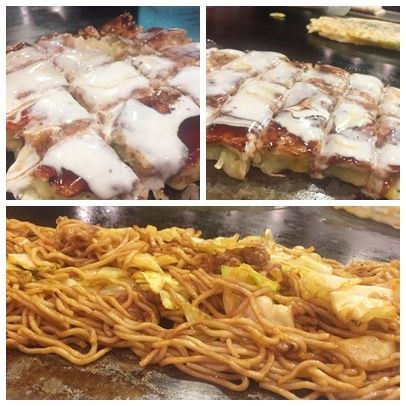 さて何食べる~~??やきそば大盛とイカ玉と豚玉。