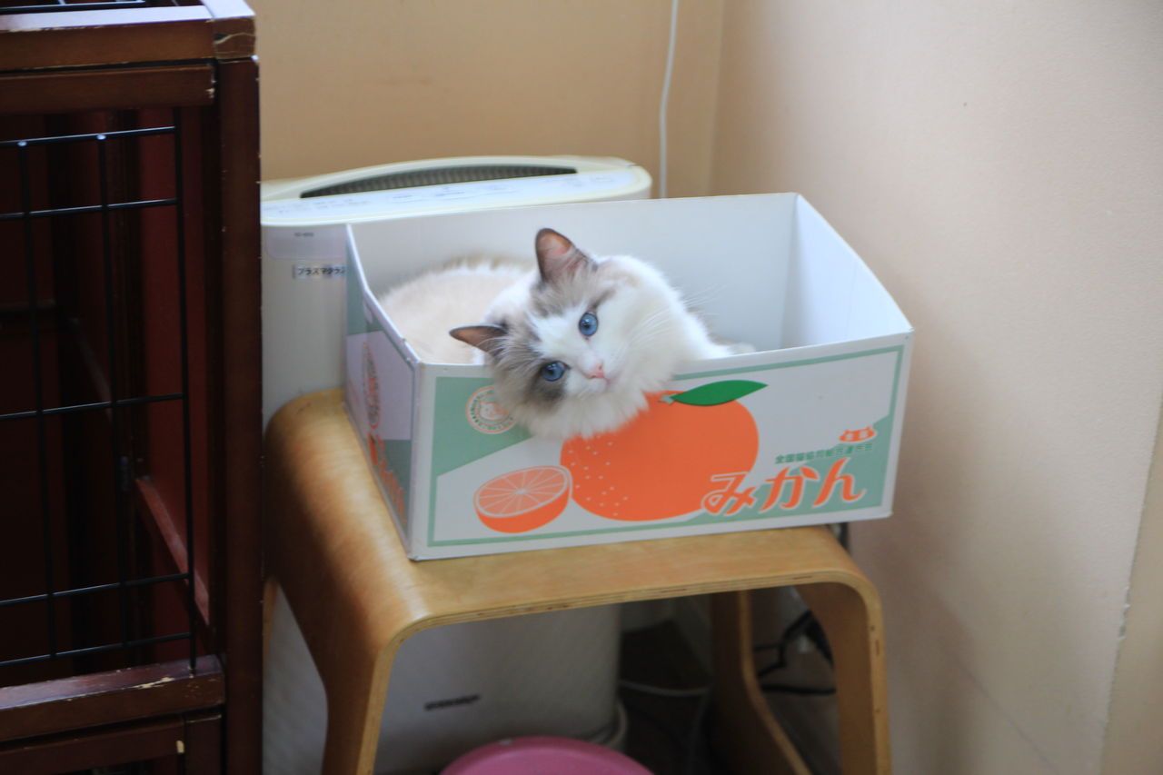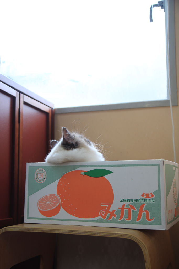 呼んだら箱からひょっこり顔を出しました(*´艸`*)