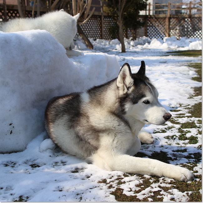 油断すると溶け始めたべちゃべちゃな雪の上でもフセしようとするんだ!!