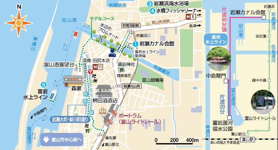 富山駅の北のほうが富山港で,その近くの岩瀬地区が観光スポットになっています。