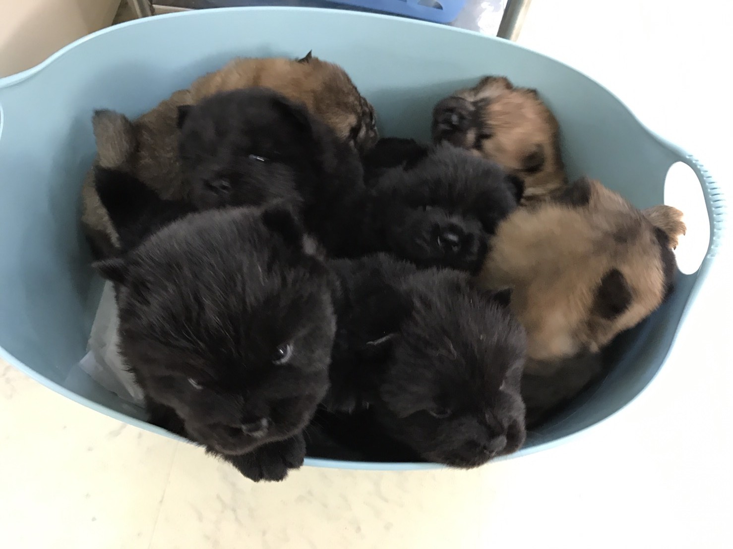 2ヶ月齡、3ヶ月齡、4ヶ月齡と、全頭検便後に予防接種&マイクロチップ