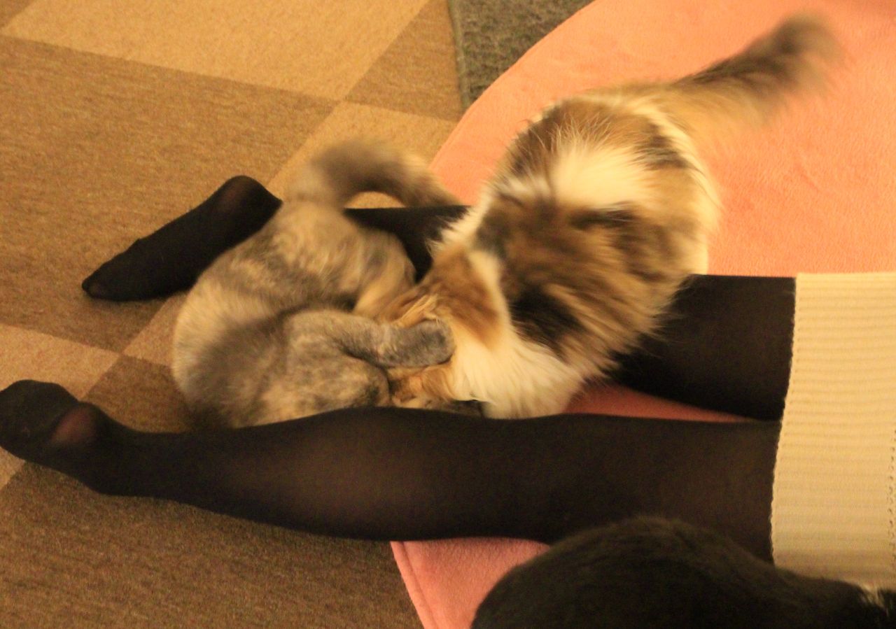 こっちでは、ペコさんが茶々をふみふみww動じない茶々先輩すごいです