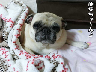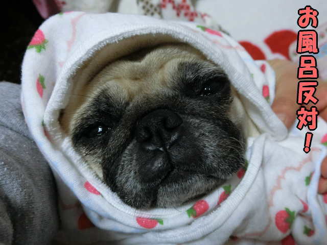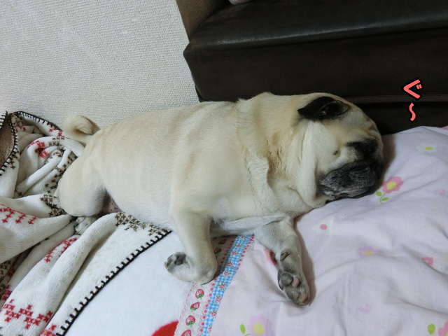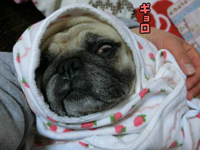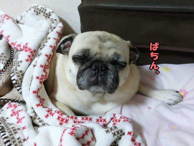 お風呂に入るよ~と声をかけると寝たふりを始めるはなちゃん。