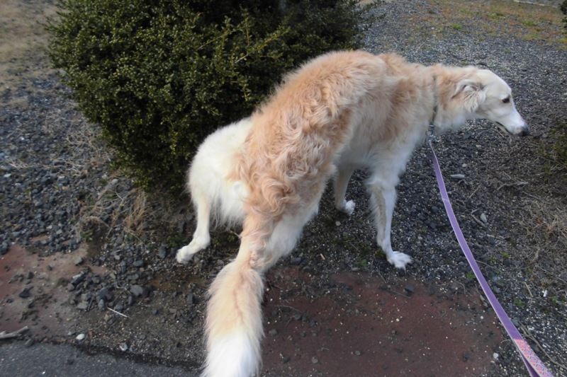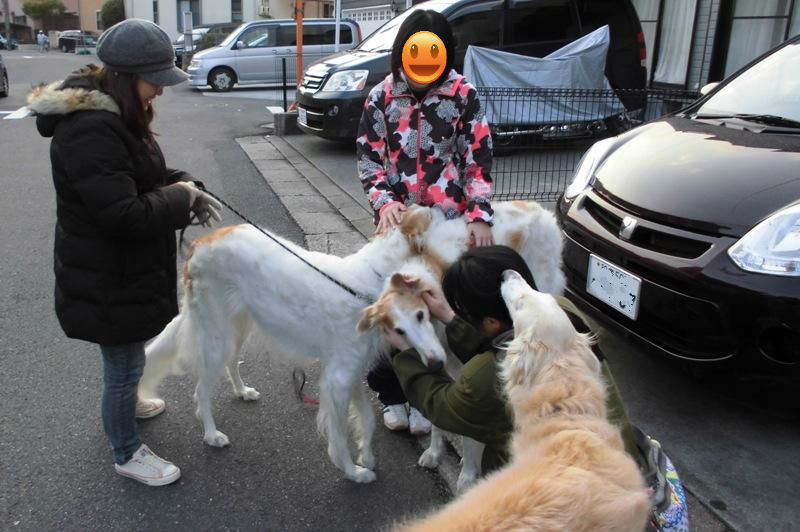 道路に出てすぐにクーちゃんの家の前で思いっきりかわいがってもらったボルズです