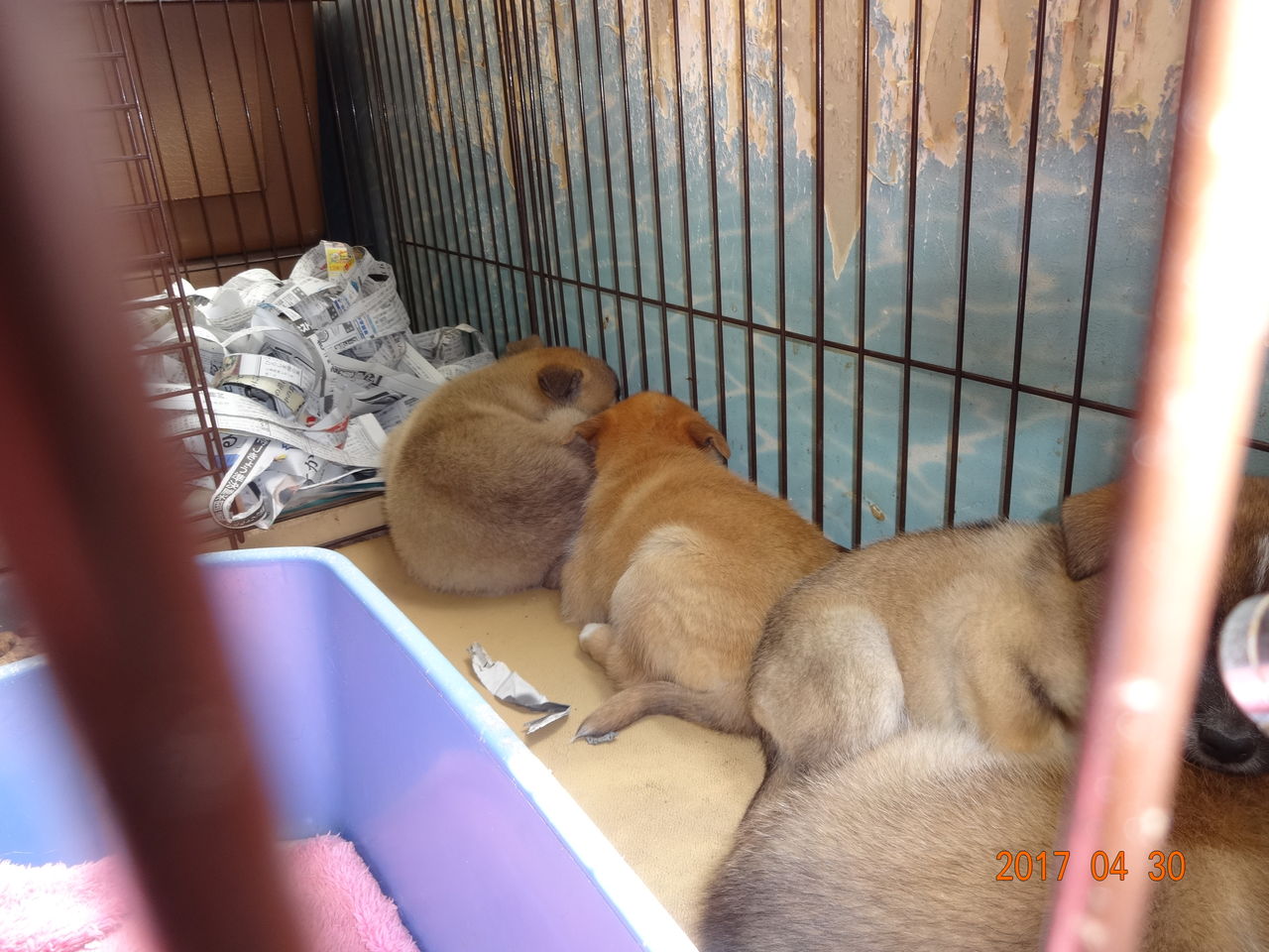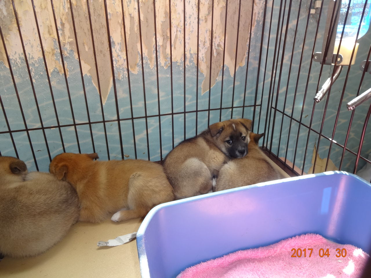 男の子が1匹、女の子が3匹、中型犬です。怖くて、怖くて