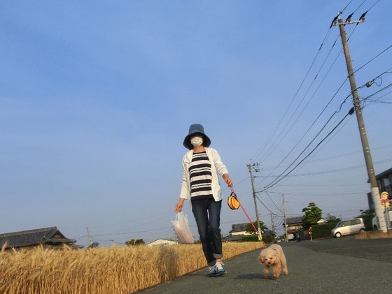 朝のお散歩は、ぐるーっと寄り道して、コンビニで朝のパンを買って帰宅です。