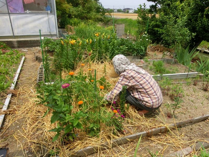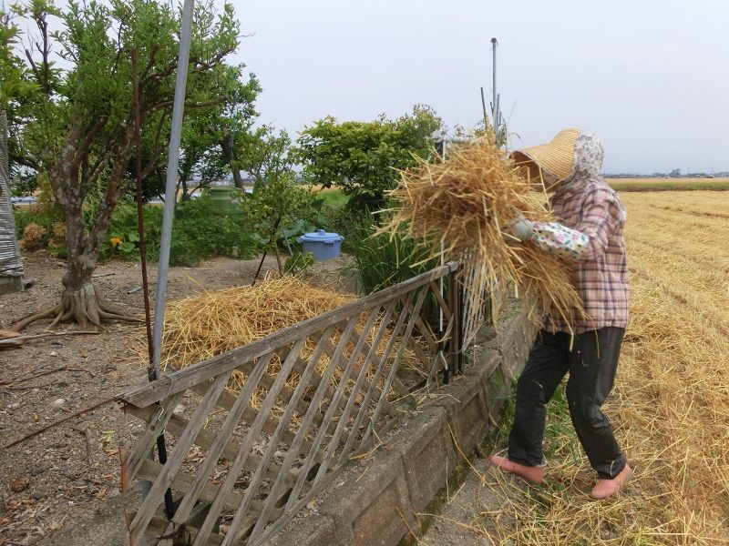 今日は、隣の農家さんから麦わらを貰い、畑に敷きました。