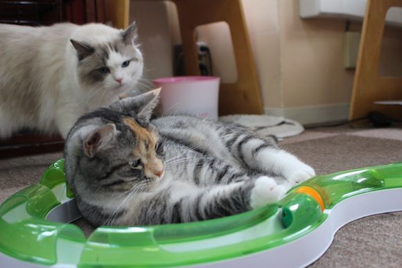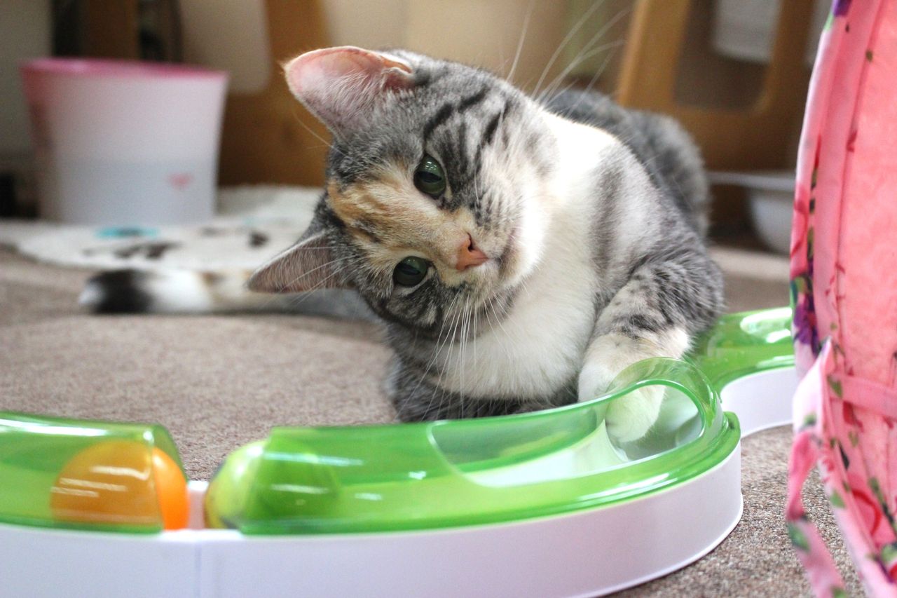 首を傾げて、困り顔でボールをちょいちょい。。。