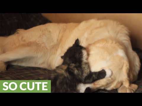《Fearless kitten plays with livestock guard dog》Rumble Viral