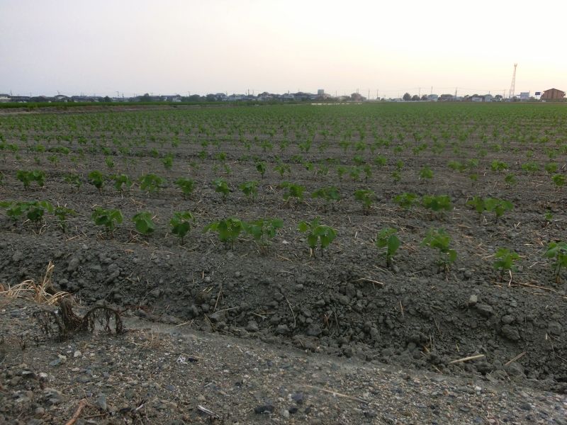雨は降らないけど、大豆はしっかり芽を出してますよ。