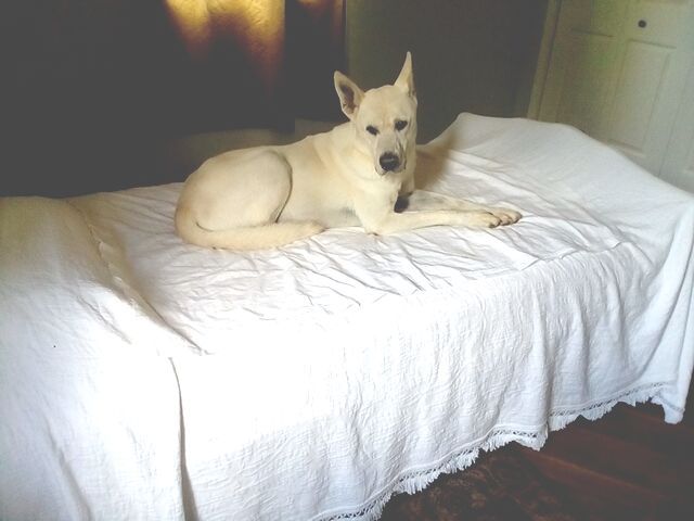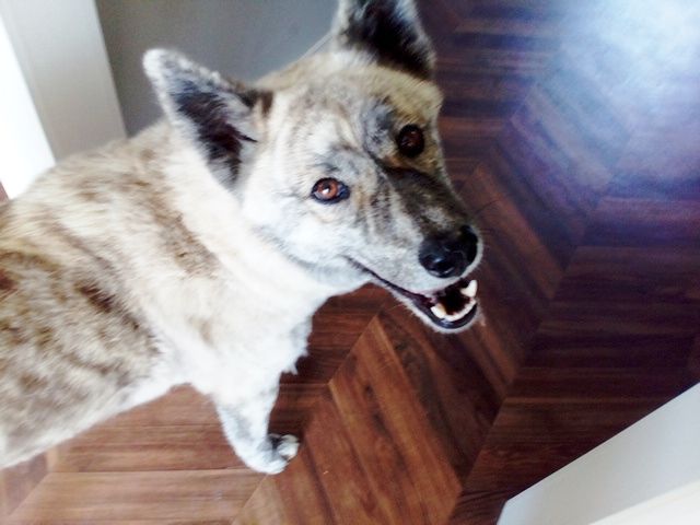 これは雷で避難中のマルちゃんの写真だが、耳が垂直に立ち上がって、尖って見える。