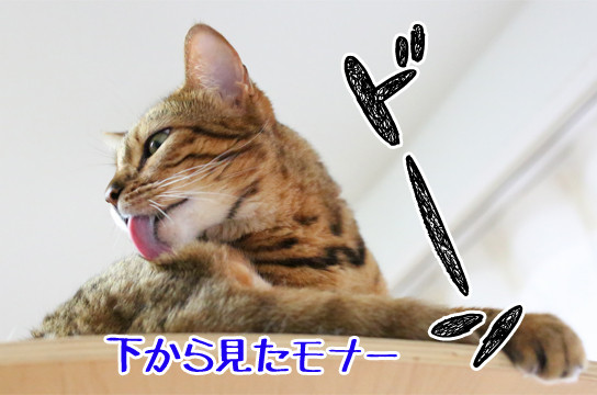 の頂上で毛づくろいしているモナーを下から撮影 パシャッ! Σp[【◎】]ω・´)