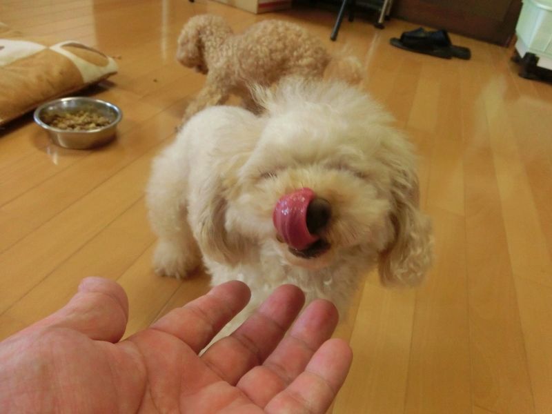 アイスちゃんは、ルカちゃんが食べた後でゆっくり食べます。