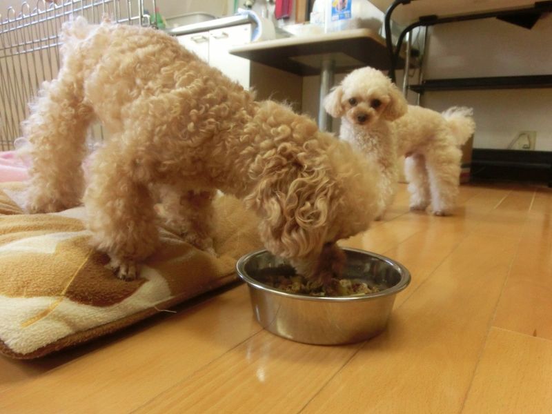 ルカちゃんが食べてるスキを見て、沢山のフードを口に咥えて自分のサークルまで持って行き、そこで吐き出して食べるライト君なのです。