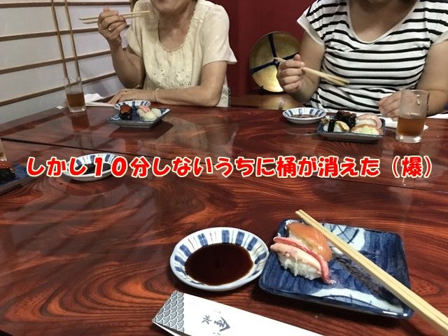 しかしここからずいぶん次の桶が来るのに時間がかかり・・なんか腹がいっぱいになってきた(汗
