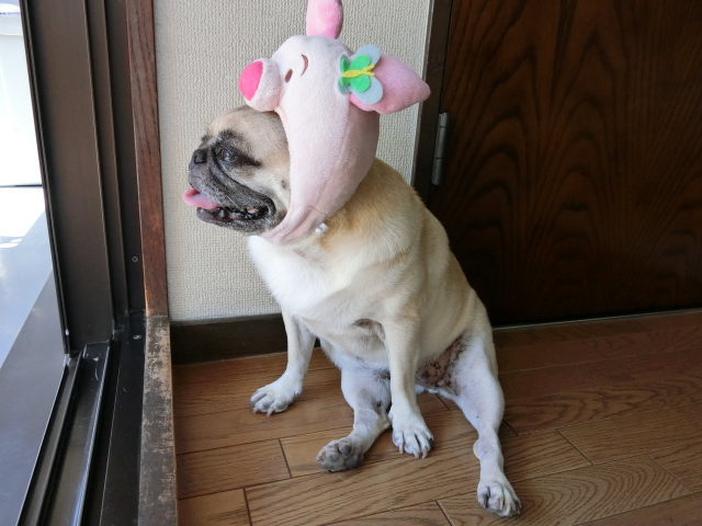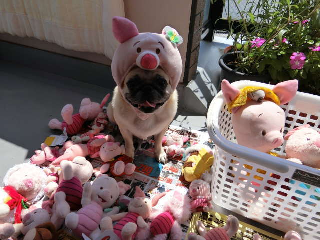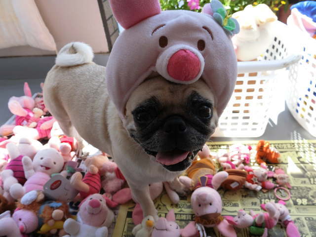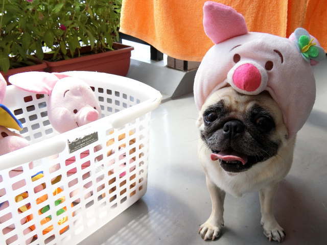 久しぶりにピグレットの被り物を被ってもらいました。