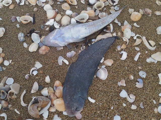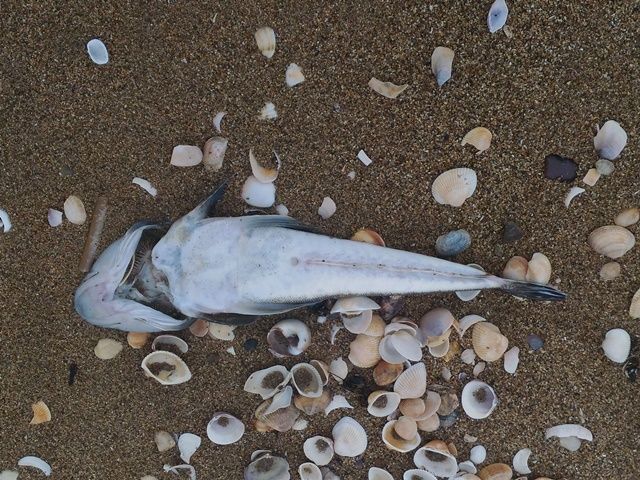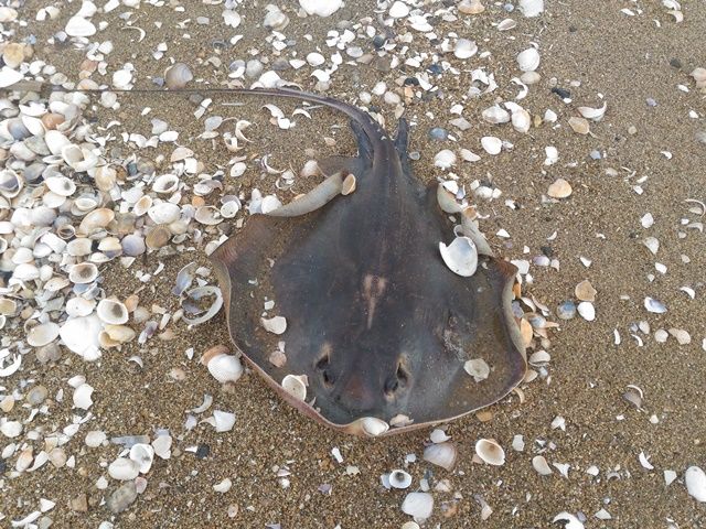 近寄ってみたら、大きなエイだった