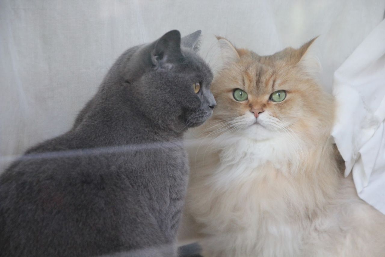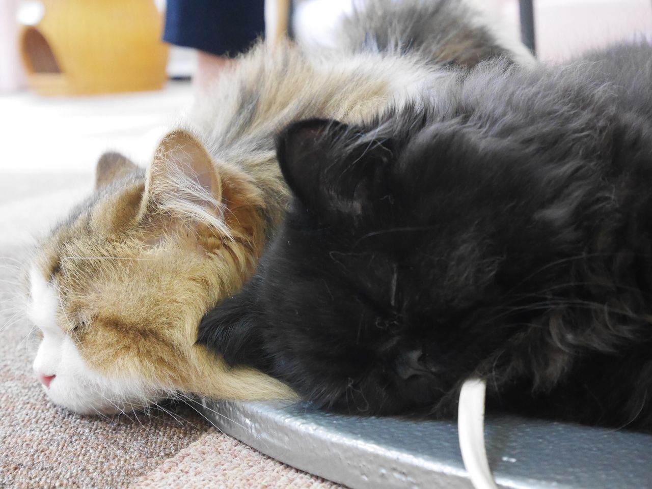 怒られてもくっつくのをやめないもっちーと、重いのを我慢しつつ寄り添うきなこ様