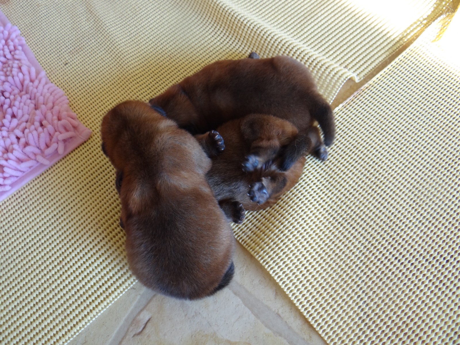 哺乳のお蔭で、子犬の体重も随分よくなってるので