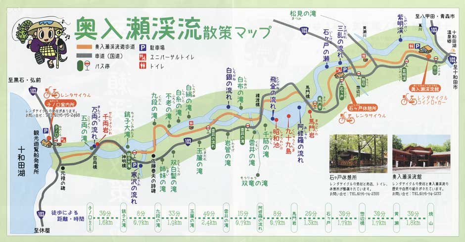 次は,待望の奥入瀬渓流(詳しくはココ)。これが地図(クリックすると大きくなります)