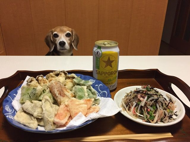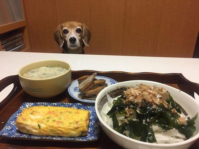 あたしの真剣な顔でわかったのか晩御飯待ちの間まったく吠えずに出来た。(ひびこはガオの真似をしてるだけ 笑)