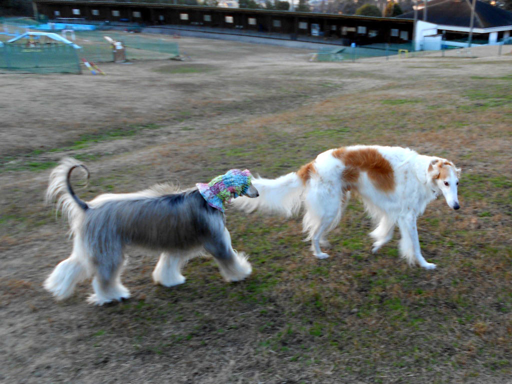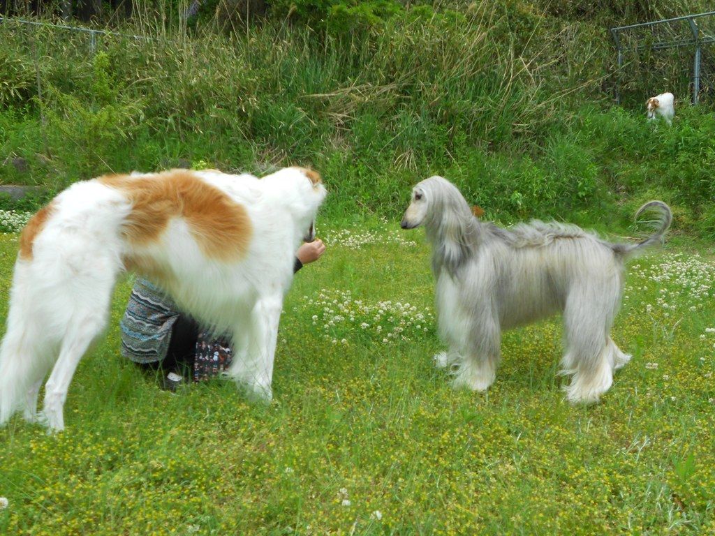 その後ジュンくん家にボルゾイしょうくんが仲間入り