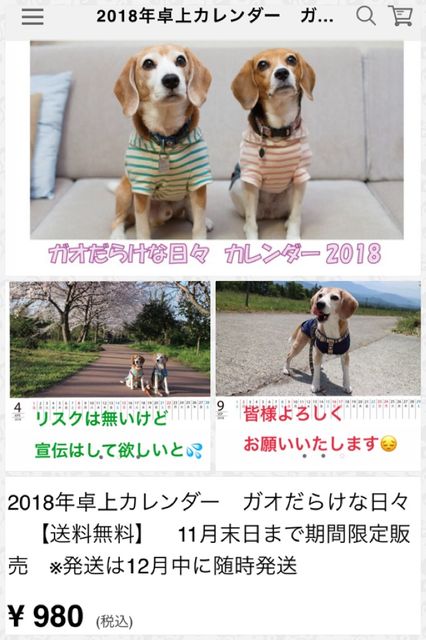 *昨日発売開始*突然カレンダーが発売になりました。
