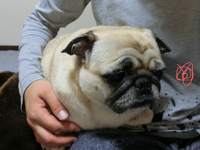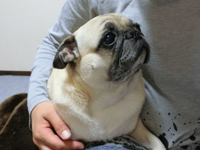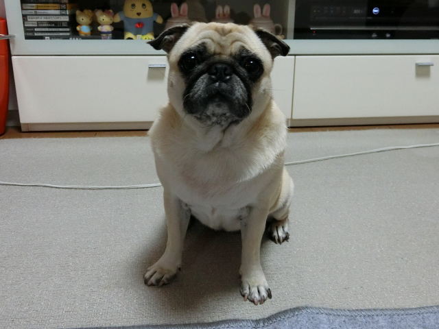 はなちゃんがカーペットから降りて私の目の前に座りました。